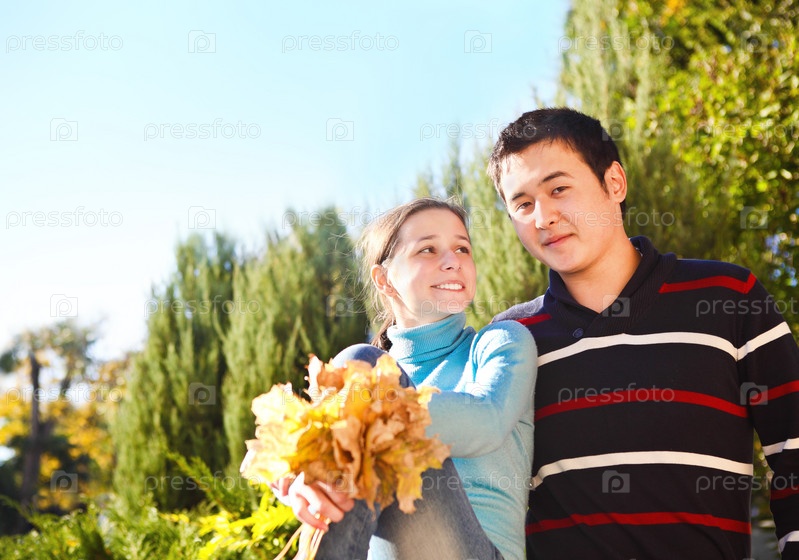 Счастливая молодая пара на открытом воздухе