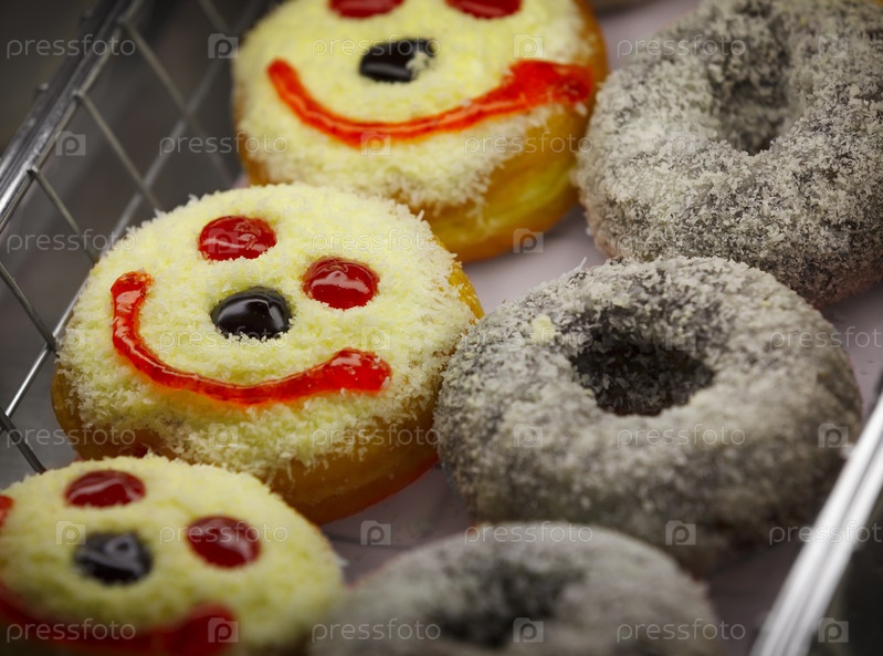 Пончики на полке в кондитерской