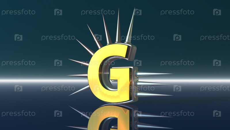 Буква g с металлическими шипами на черном фоне - 3d иллюстрация