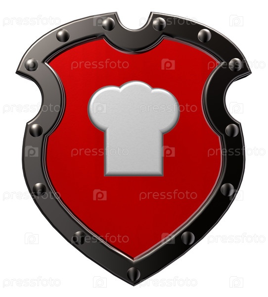 Кулинарная шапка на металлическом щите - 3d иллюстрация