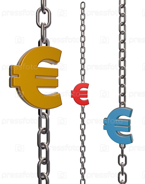 Цепочка с символом евро на белом фоне - 3d иллюстрация