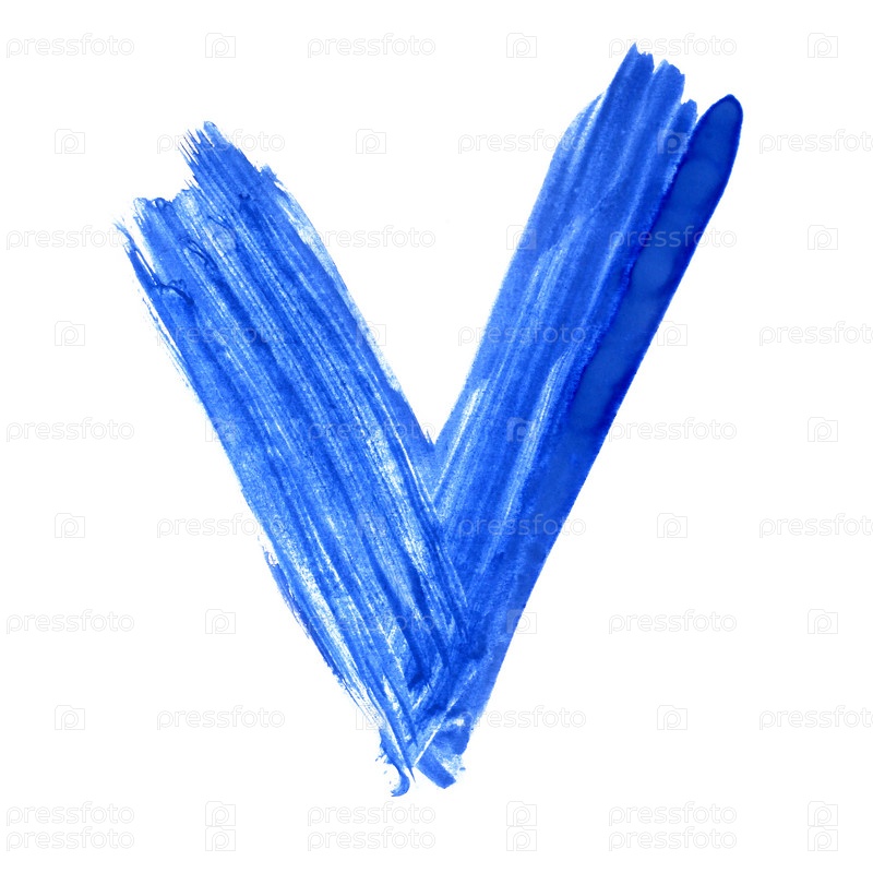 Акварельная синяя галочка, изолированная на белом фоне