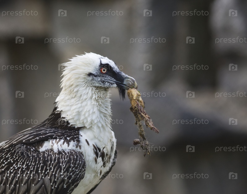 Стервятник-бородач ест мясо