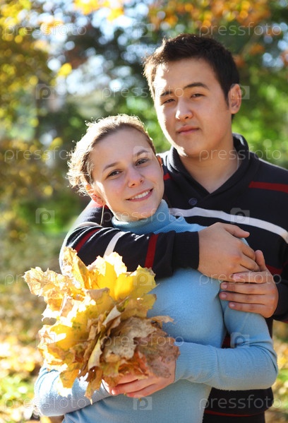 Счастливая влюбленная пара на свежем воздухе