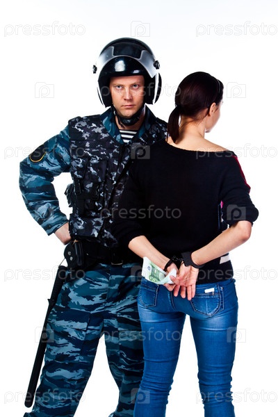 Офицер полиции арестовывает молодую женщину