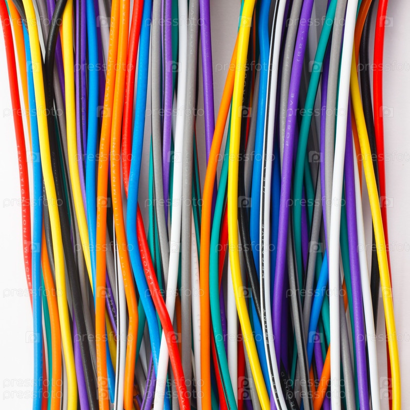 Цветные сетевые провода, изолированные на белом фоне