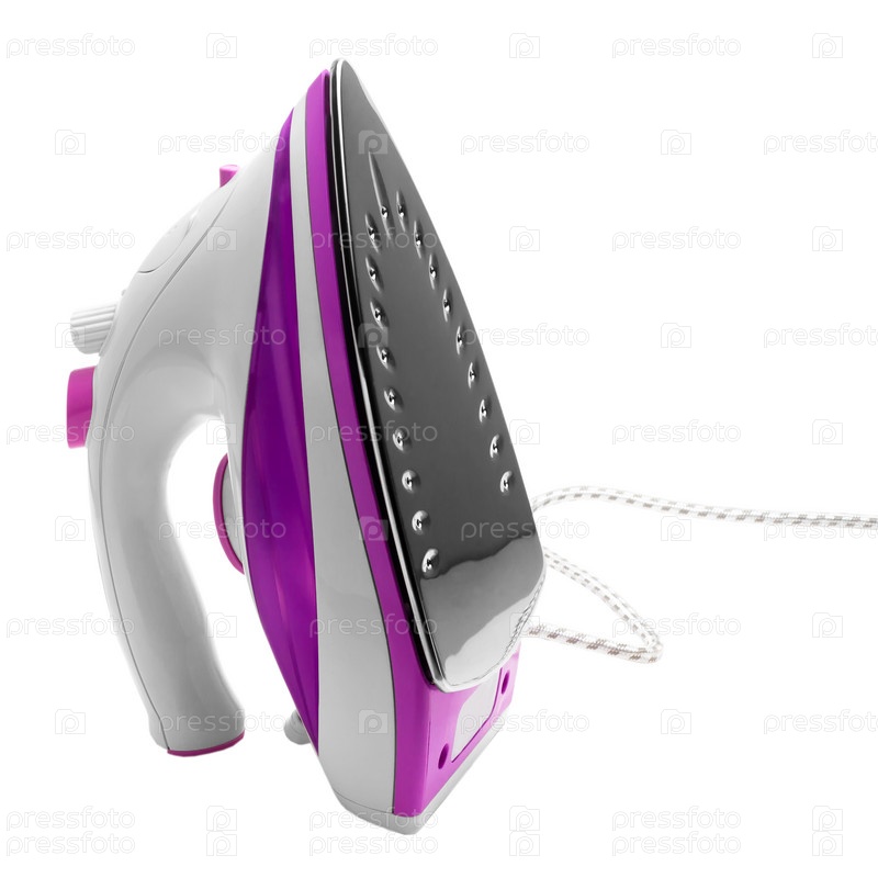Электрический фиолетовый паровой утюг, изолированный на белом фоне