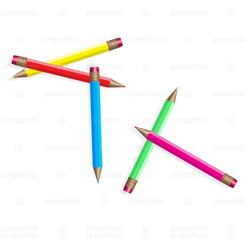 Пять цветных карандашей на белом фоне