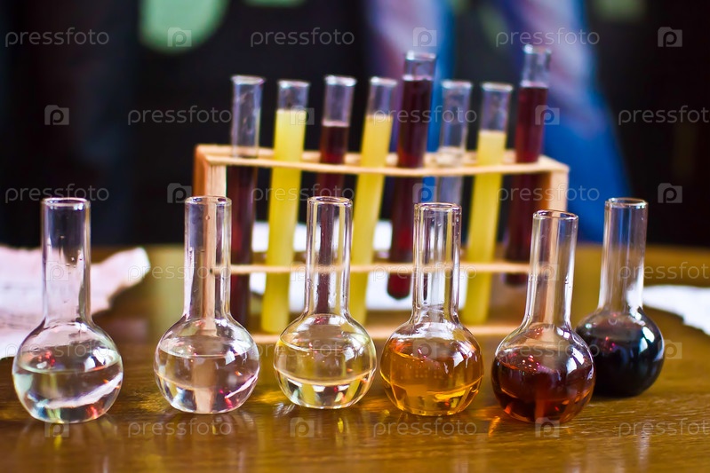 Лабораторные колбы на столе