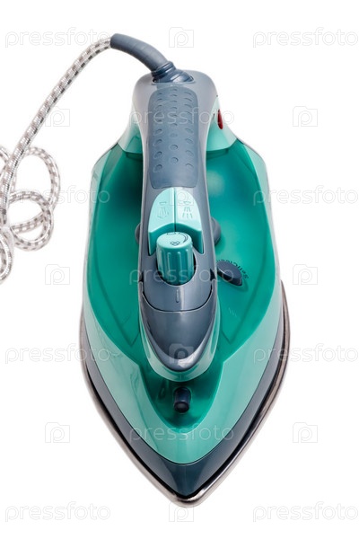 Зеленый утюг, изолированный на белом фоне