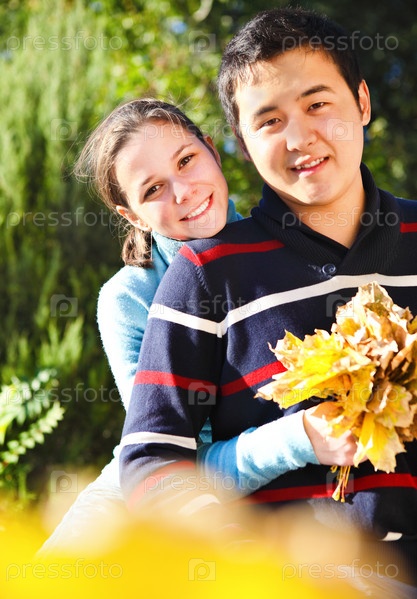Счастливая влюбленная пара на природе