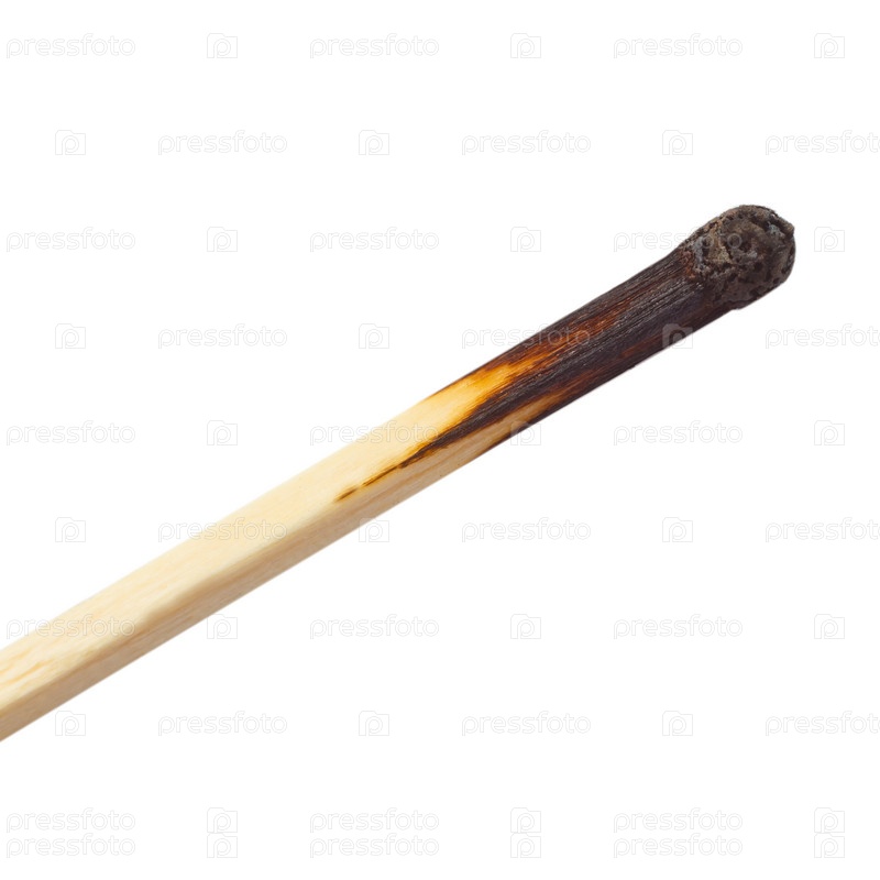 Сгоревшая спичка, изолированная на белом фоне