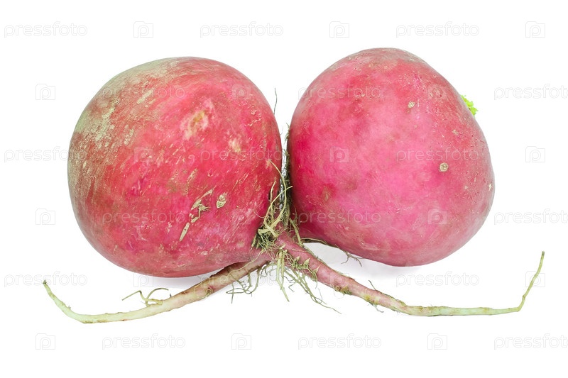 Два больших редиса на белом фоне