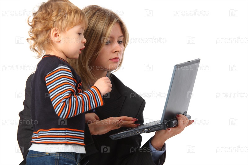 Мать и сын с ноутбуком