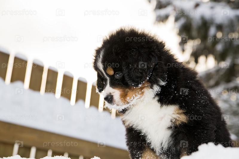 Щенок бернского зенненхунда смотрит сверху