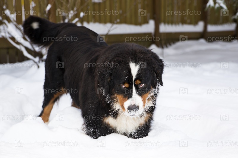 Собака бернского зенненхунда в снегу