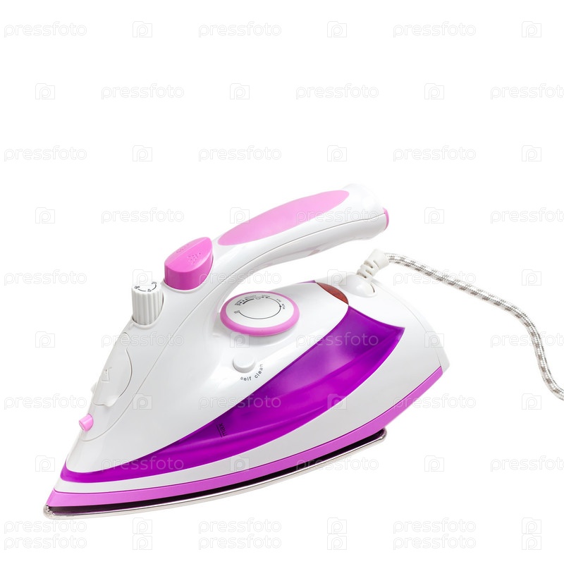 Фиолетовый электрический паровой утюг, изолированный на белом фоне