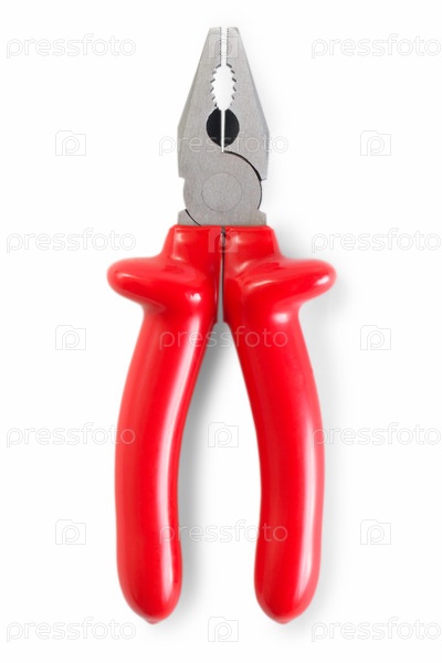 Красные плоскогубцы, изолированные на белом фоне