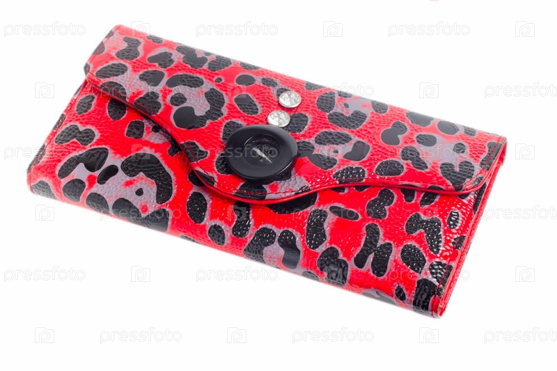 Красный кожаный кошелек на белом фоне