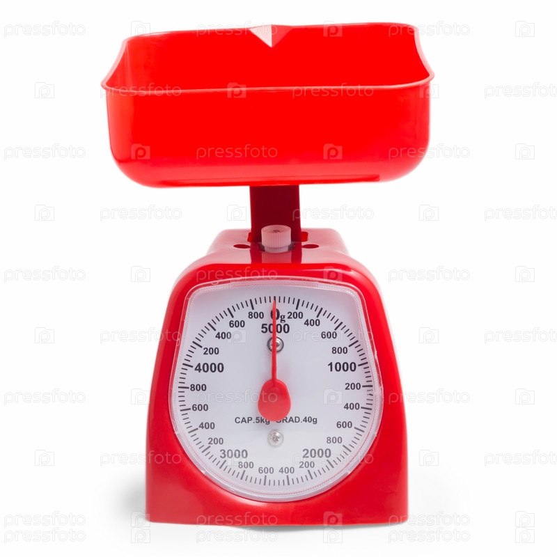 Красные кухонные весы на белом фоне