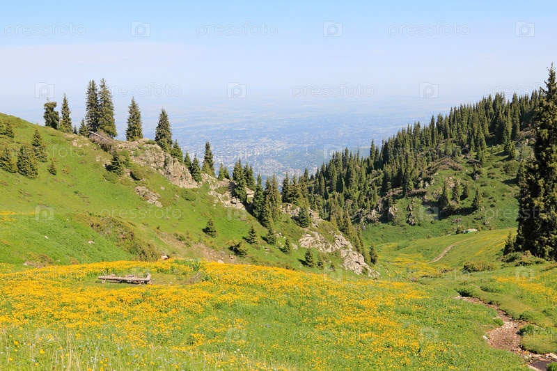 Горная поляна с видом на город
