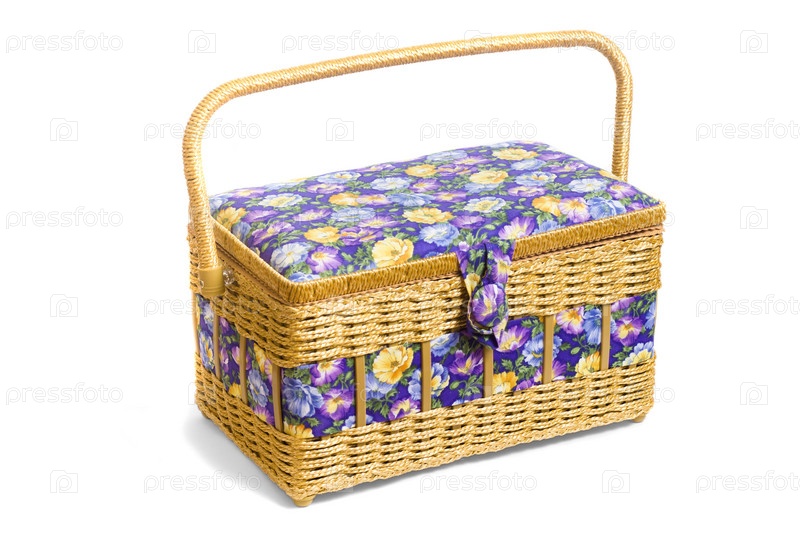 Винтажная плетеная корзина, изолированная на белом фоне
