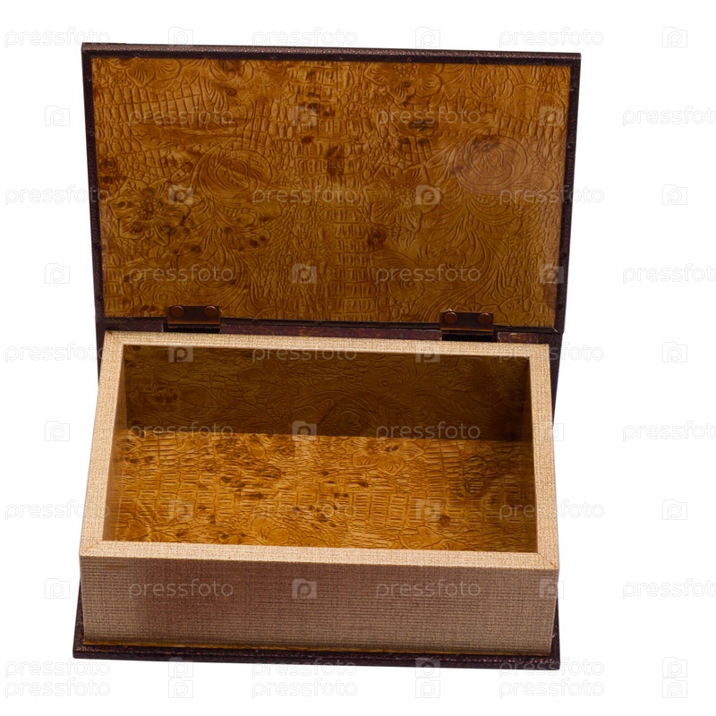 Коричневая старинная деревянная шкатулка, изолированная на белом фоне
