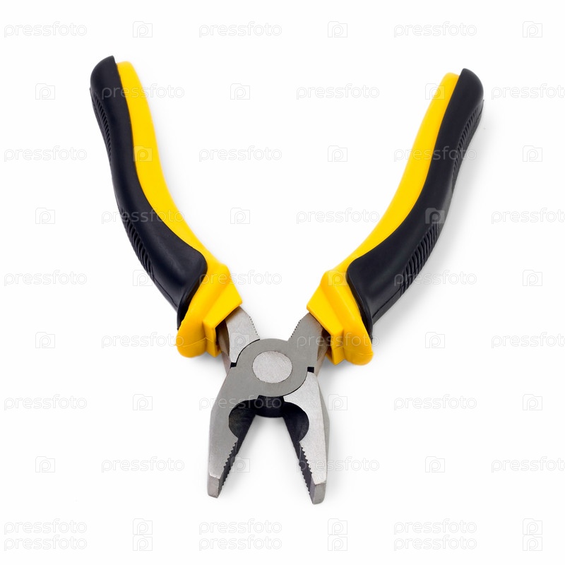 Желтые плоскогубцы, изолированные на белом фоне