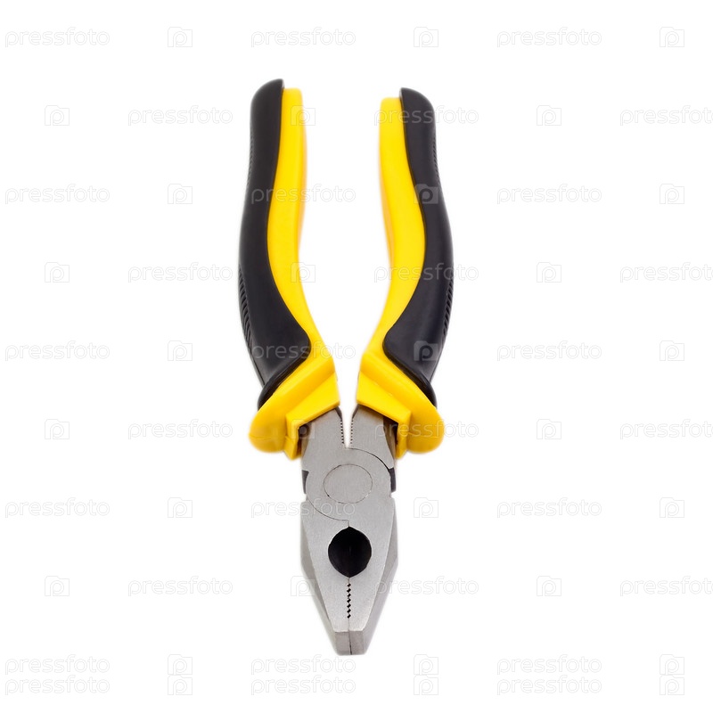 Желтые плоскогубцы, изолированные на белом фоне