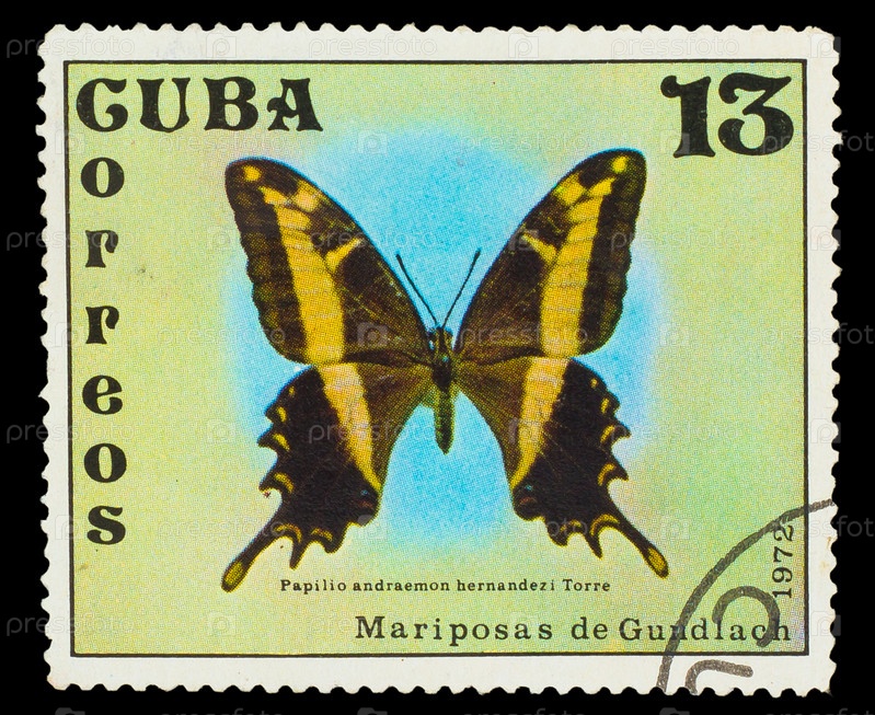 Куба, марка 1972 года, бабочка Папилио Андремон