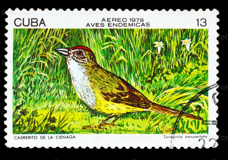 Куба, марка 1978 года, воробьиная птица - torreornis inexpectata