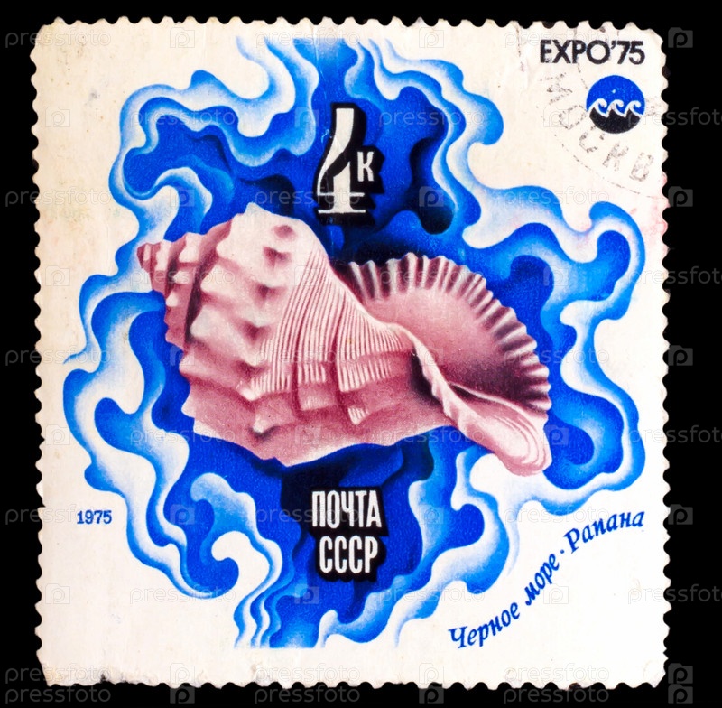 СССР, 1975: Марка с рапаной из серии океан. Экспо-75