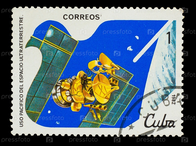Куба, 1982. Марка с научной космической станцией в космическом пространстве