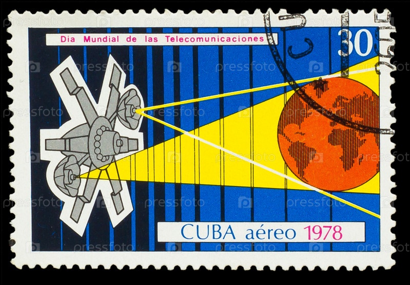 Куба, марка 1978 года, программа Интеркосмос, спутниковая и наземная станции, спутниковая тарелка