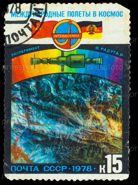 Марка СССР 1978 года. Международные полеты в космос, эксперимент Радуга, фотографии Земли из космоса, сотрудничество между СССР и ГДР