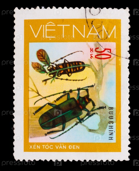Вьетнам, марка 1981 года, синие жуки лесорубы