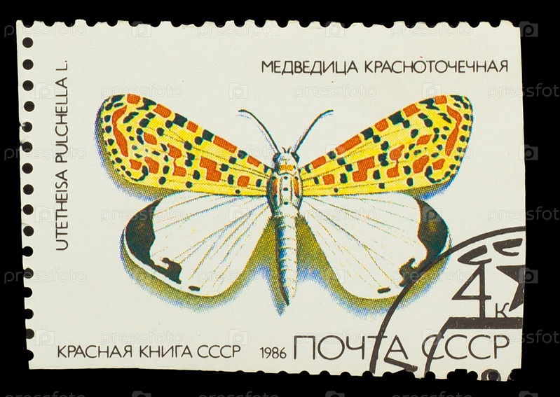 СССР, марка 1986 года, бабочка Медведица точечная, из серии «Красная книга СССР»