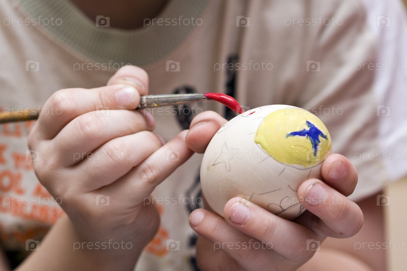 Ребенок раскрашивает пасхальное яйцо