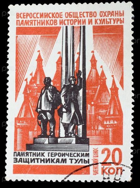 Марка СССР 1975 года. Российское общество охраны памятников истории и культуры, памятник героических защитников Тулы