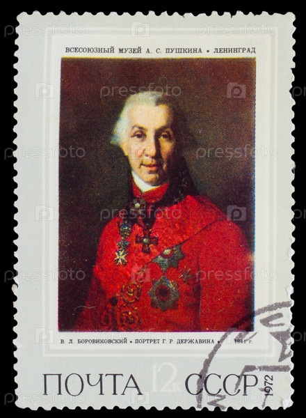 Марка СССР 1972 года. Художник Боровиковский, Портрет Державина, 1811 год