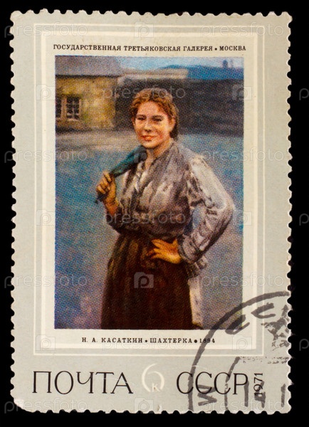 СССР, марка 1971 года, картина Касаткина "Шахтерка"