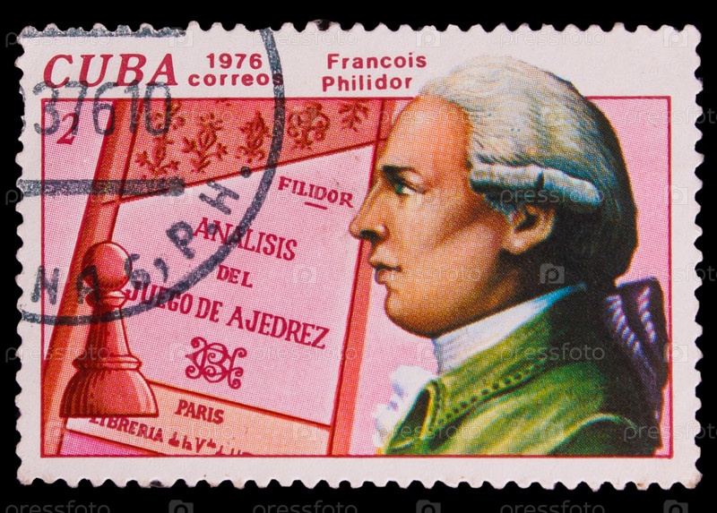 Куба, марка 1976 года, Франсуа Филидор и его книга "Анализ и игра в шахматы"
