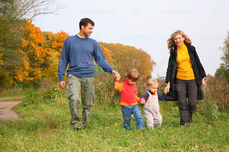 Семья на прогулке в осеннем парке