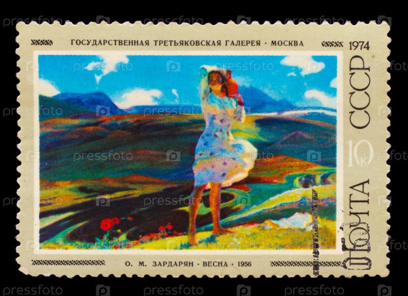 Марка СССР 1974 года. Государственная Третьяковская галерея, художник О.Зардарян, Весна