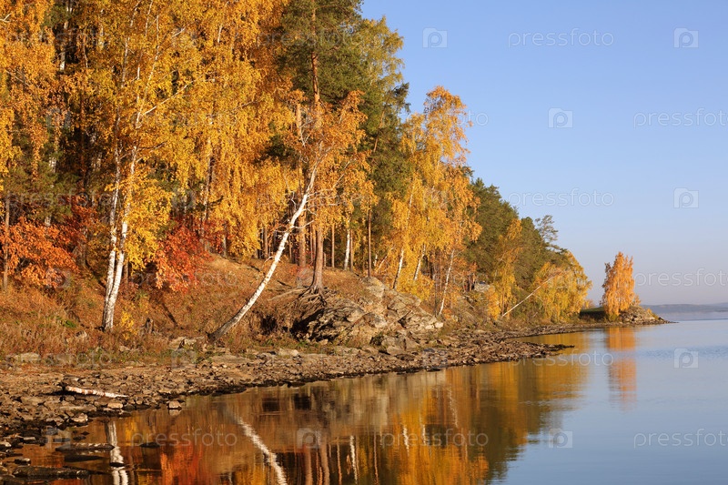 Осенний лес на берегу озера