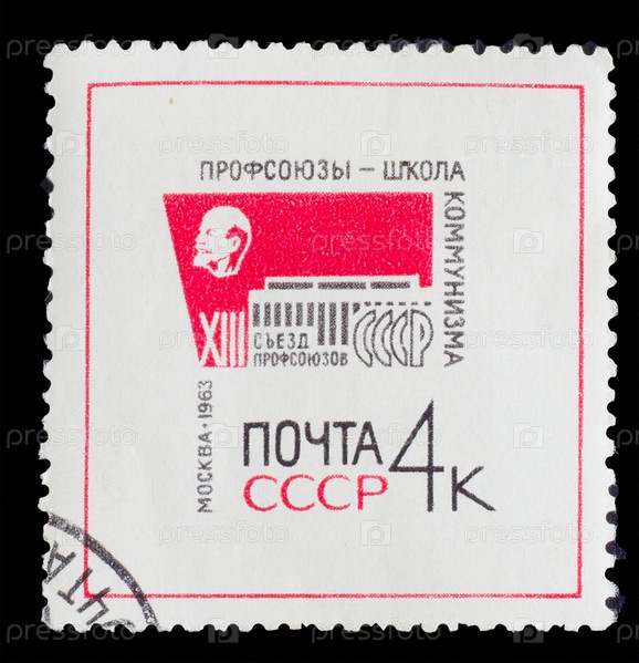 Марка СССР 1963 года. Портрет Ленина, профсоюзы, школа коммунизма, 13 Конгресс профсоюзов