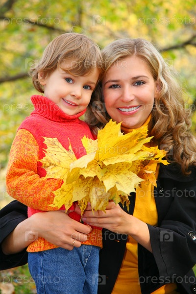 Мама с дочерью в осеннем парке