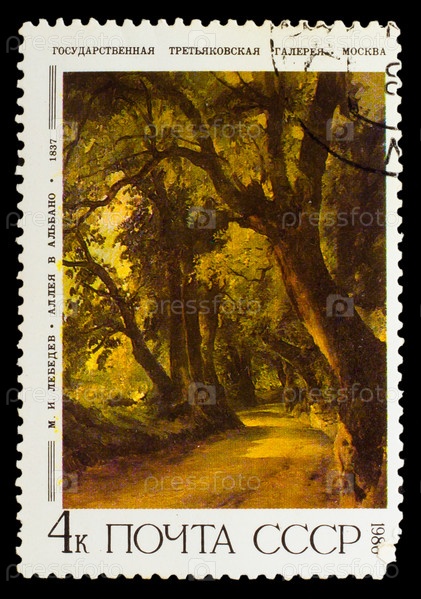 Марка СССР 1986 года. Аллея в Альбано. М.И. Лебедев