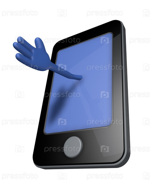 Смартфон с голубой рукой на дисплее. 3d иллюстрация
