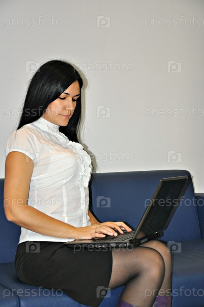 Деловая женщина работает на ноутбуке
